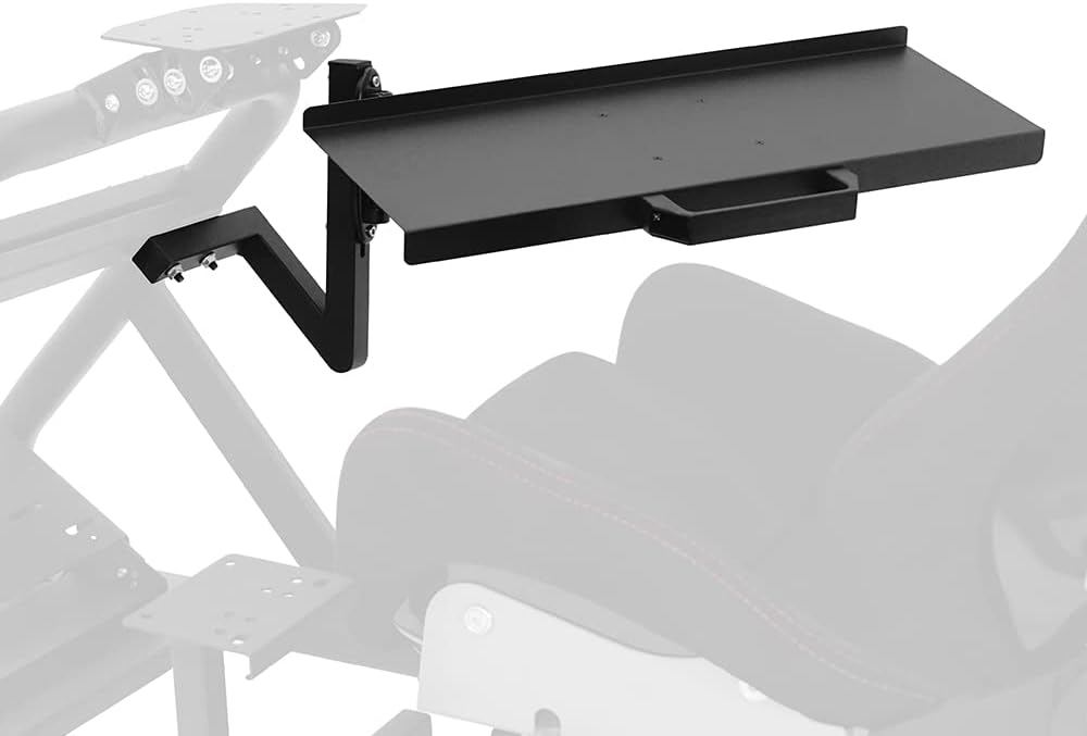 私が思い描いているキーボードトレイの理想的な形は、ゲーミングハンドルコントローラーを取り付けることができるゲーミングシートのオプションにありました。ハンドル固定部にキーボードトレイを取り付けることができ、回転式になっており片手で簡単に引き出せ、不要な時はサイドへ移動できるスタイルです。