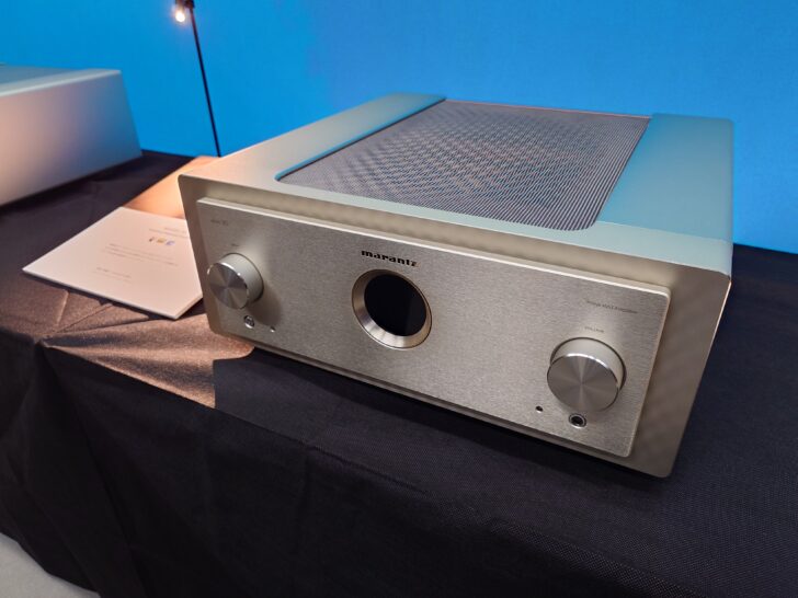 演奏中のMARANTZ SACD/CDプレーヤー SACD 10、ストリーミングプリアンプ Link 10n、そしてプリメインアンプMODEL 10を2台パワーアンプとして贅沢に使っているようです。私が聞いたのはストリーミング再生だったと思います。