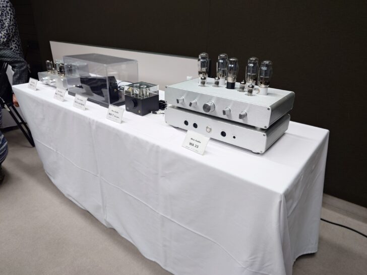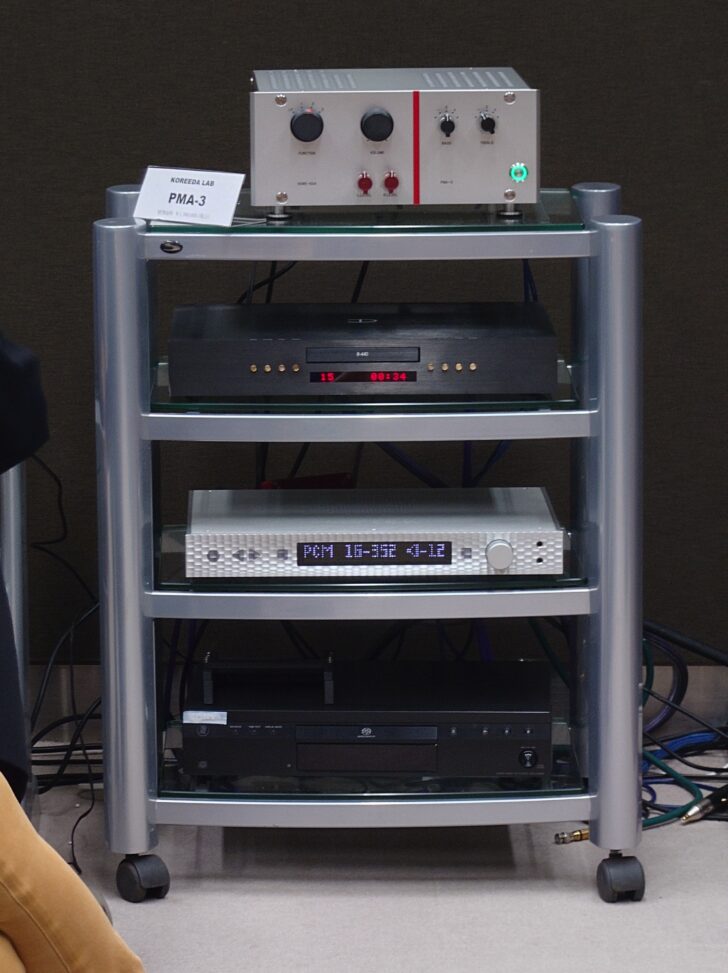 デモに使われていたのはKOREEDA LAB PMA-3と、Densen Audio Technologies B-440、MYTEK Manhattan DAC IIだと思われます。使われていない一番下の機器はSONY SCD-XE800かな?