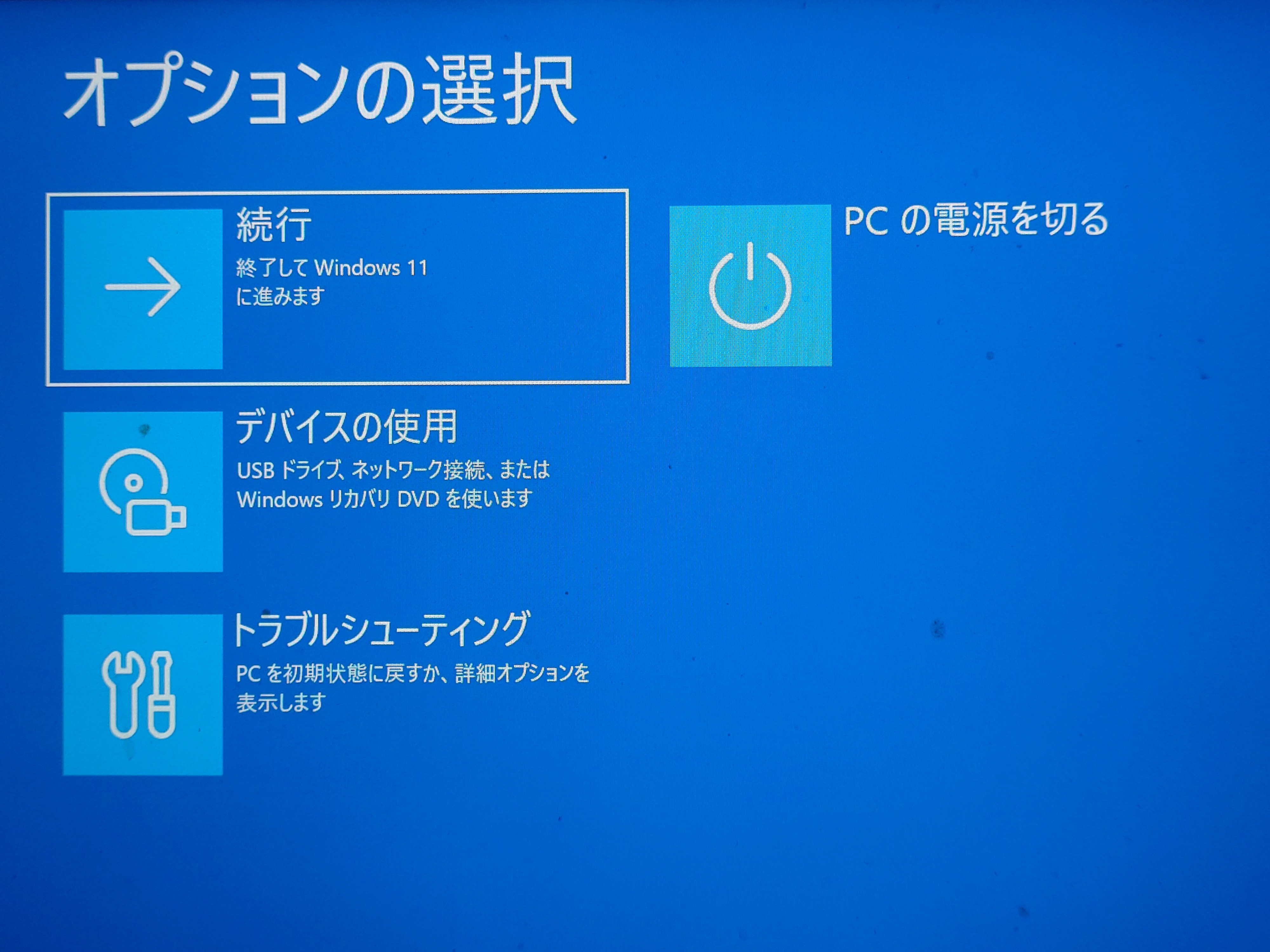 アカウントの初期設定を行った後、改めてネットワークへ接続して、ダウンロードしてNASに保存してあったWindows11のインストールファイルをコピーします。あとは以前の投稿の通りの手順で、再びWindows11のインストールを試みました。
