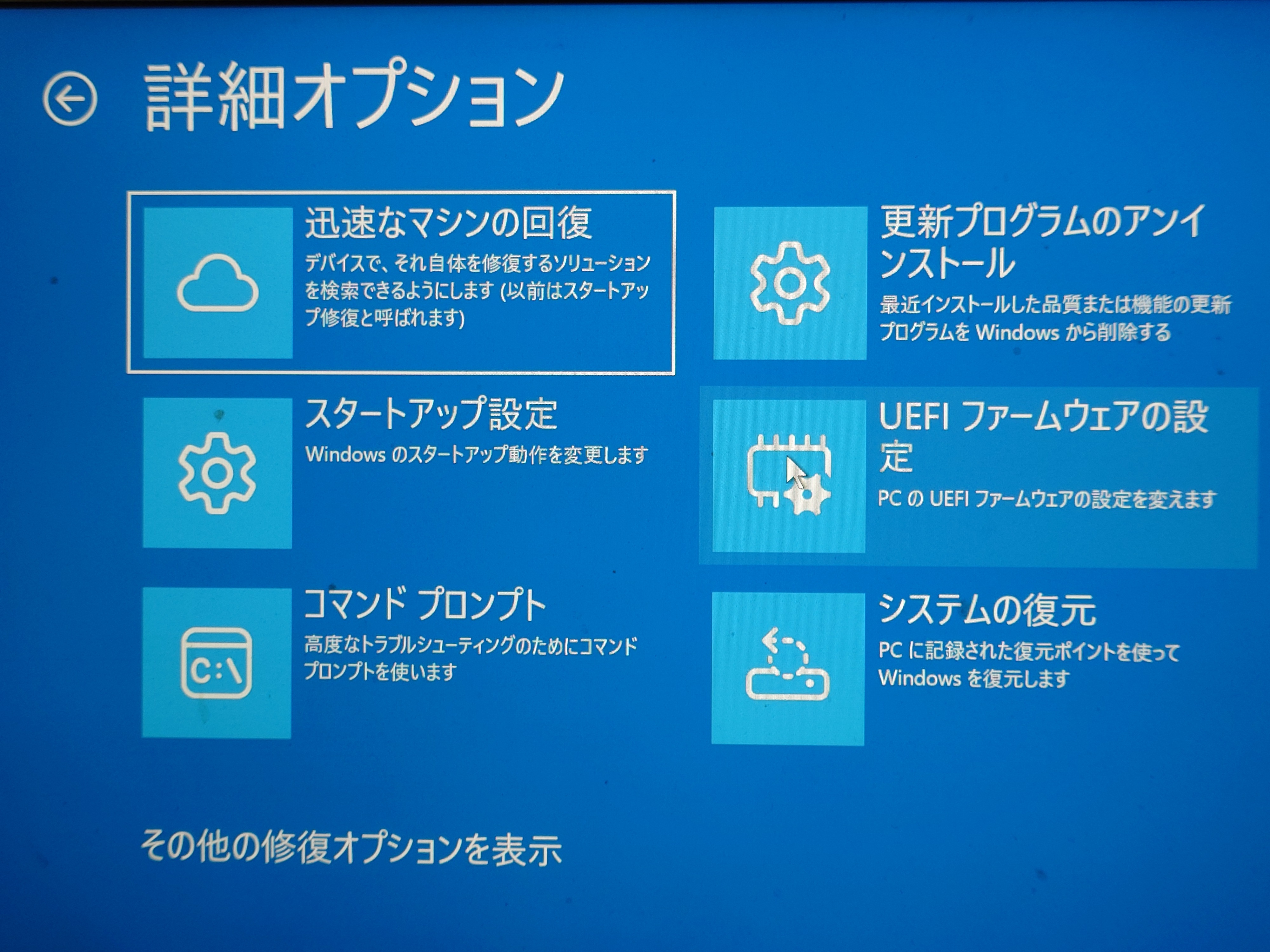 Windows10の初期化を試みる