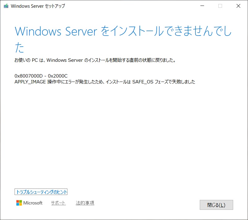 Windows Serverはインストールできませんでした