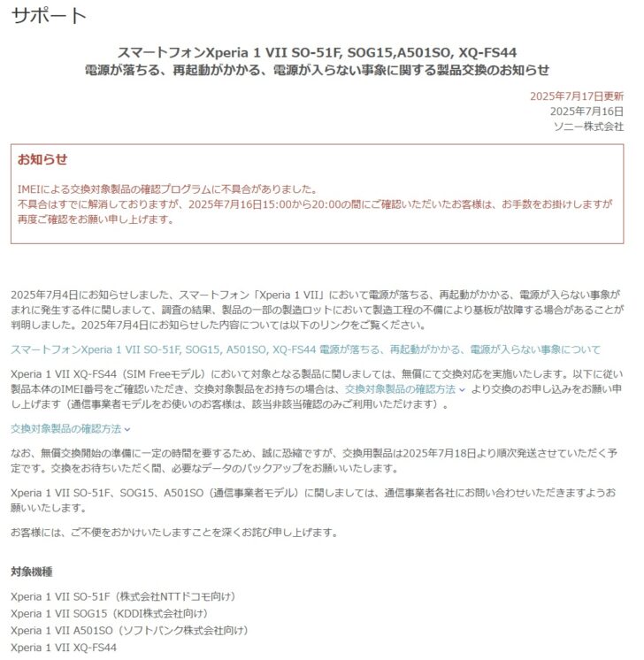 候補に挙がっていたiPhone 16 Pro/16 Pro Max、Samsung Galaxy S25 Ultra、SONY Xperia 1 VIIの内、光学ズームの性能が頭1つ抜けていたXperia 1 VIIを候補に考えていました。しかし電源が入らなくなる不具合が見つかったことが公表され、Xperia 1 VIIの新規受注が停止になってしまいました。